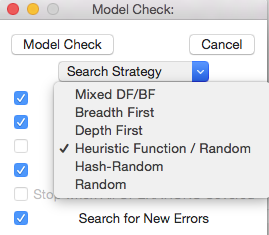 As of version 1.5.1 you can use the -mc_mode flag to provide other options to control the model checking (see also the tutorial page on directed model checking options).