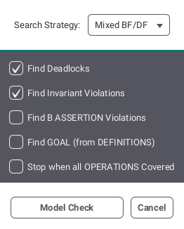 HINT: If no operation is enabled, the state of the B machine corresponds to a deadlock