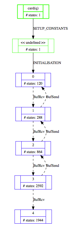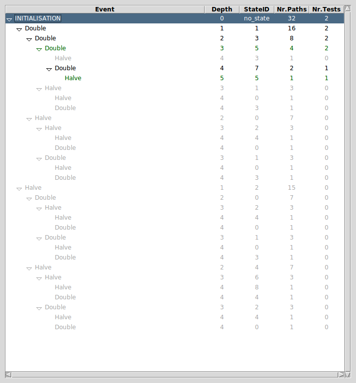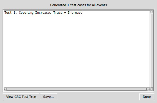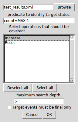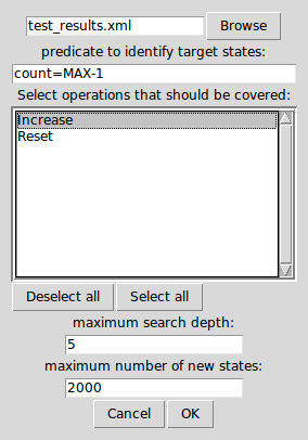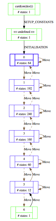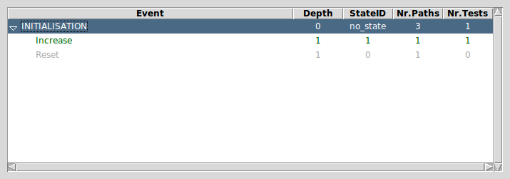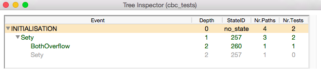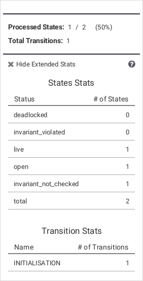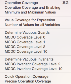 At each point during the animation process, several useful commands displaying various information on the B machine are available in the Analyse menu. The Compute Coverage command opens a window that displays three groups of information: