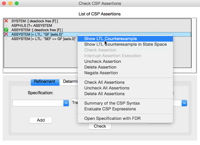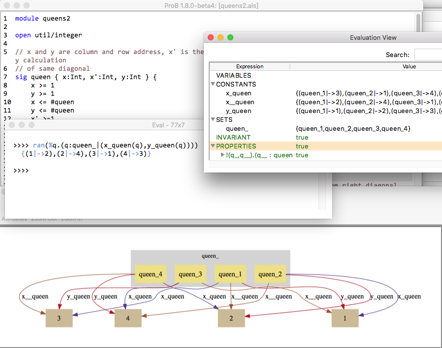 There are three particular operations that correspond to specific tasks performed by ProB: