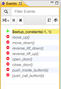These operations are the ones whose preconditions and guards are satisfiable in the current state. The parameter values that make true the precondition and guard are automatically computed by ProB, and one entry for the operation is displayed in the Enabled Operations pane for each group of parameter values. Each parameter value is displayed as a set between curly brackets, and the group of parameter values are enclosed between brackets after the operation name.