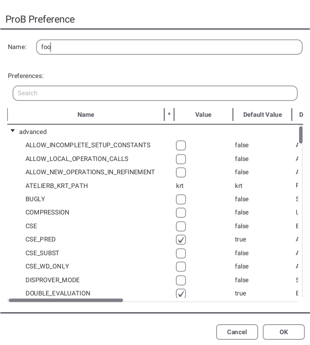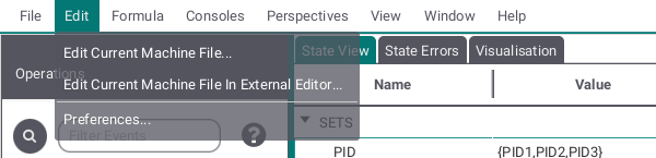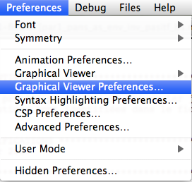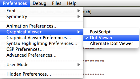 The "Preferences" menu allows the various features of ProB to be configured. When ProB is started for the first time, it creates a file prob_preferences.pl that stores those preferences.