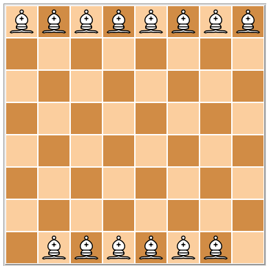 DEFINITIONS BWOFFSET(x,y) == (x+y) mod 2; ANIMATION_FUNCTION_DEFAULT == ( {r,c,i|r:1..n & c:1..n & i=(r+c) mod 2 } ); ANIMATION_FUNCTION == {r,c,i|(r,c):hasbishop & i= 2+BWOFFSET(r,c)} ; ANIMATION_IMG0 == "ChessPieces/Chess_emptyl45.gif"; ANIMATION_IMG1 == "ChessPieces/Chess_emptyd45.gif"; ANIMATION_IMG2 == "ChessPieces/Chess_bll45.gif"; ANIMATION_IMG3 == "ChessPieces/Chess_bld45.gif"; SET_PREF_TK_CUSTOM_STATE_VIEW_PADDING == 1; END