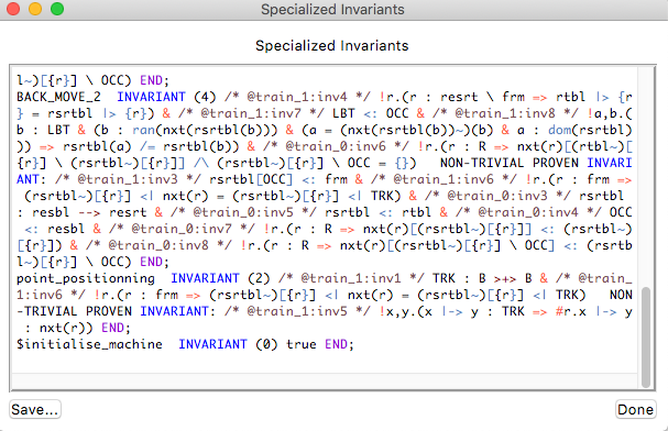 In ProB Tcl/Tk (aka ProB Classic) you can inspect the so obtained specialized (simplified) invariants for each operation, by choosing one of the commands in the Debug menu: