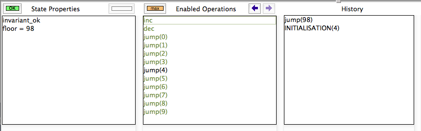 jump(level) = PRE level : 0..99 THEN floor := level END