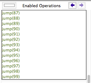 As you can see, only 10 values for the level parameter of the jump operation are displayed in the "Enabled Operations" pane. The orange "max" button to the left of "Enabled Operation" tells you that not all possible parameter values for the operations were computed.