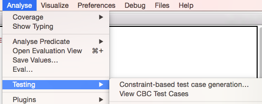 First select the "Constraint-based Testcase Generation.." command in the Analyse menu: