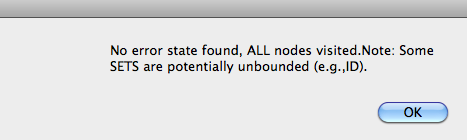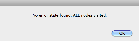 Now click the "Model Check" button. After a short while, ProB will give you the following message:
