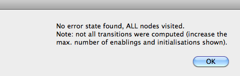 Now select the "Model Check..." command in the "Verify" menu which brings up the model checking dialog box: