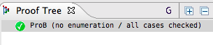 Upon selecting the Disprover, it builds a formula from the Hypotheses and the negated Goal. The ProB model checker then tries to find a model for that formula. If that is possible, this model is a counter example that will be presented back to the user in the proof tree. The disprover also checks if there cannot be a model for the formula. If this is the case it acts like a decision procedure, i.e., absence of a model is a proof for the goal. This is shown in the proof tree as follows: